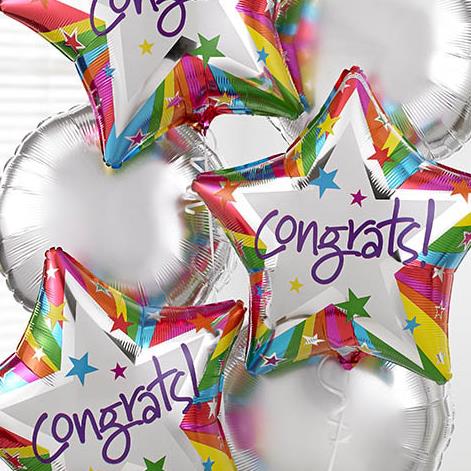 Congratulate someone with a surprise delivery of six helium-filled balloons. Our Congratulations Balloon Bouquet includes three bright blue balloons and three 'Congrats' balloons - a gift they’re sure to love!