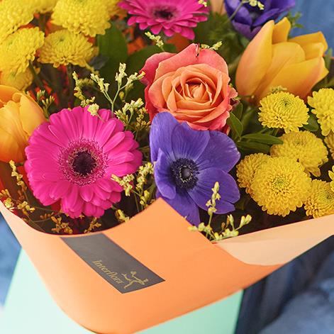 A sweet little giftbox with a bright handcrafted bouquet inside.