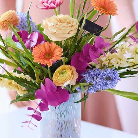 A handblown vase filled with the freshest Mother’s Day flowers, chosen and perfectly arranged by the local florist. No need for mum to lift a finger AND she’ll get a new vase – lovely! This year our Mother’s Day designs are all about gorgeous pastels with pops of colour. Expect to see blooms in shades of baby pink, cream, and lemon with bursts of cerise and tangerine, and highlights of pale blue and lilac.